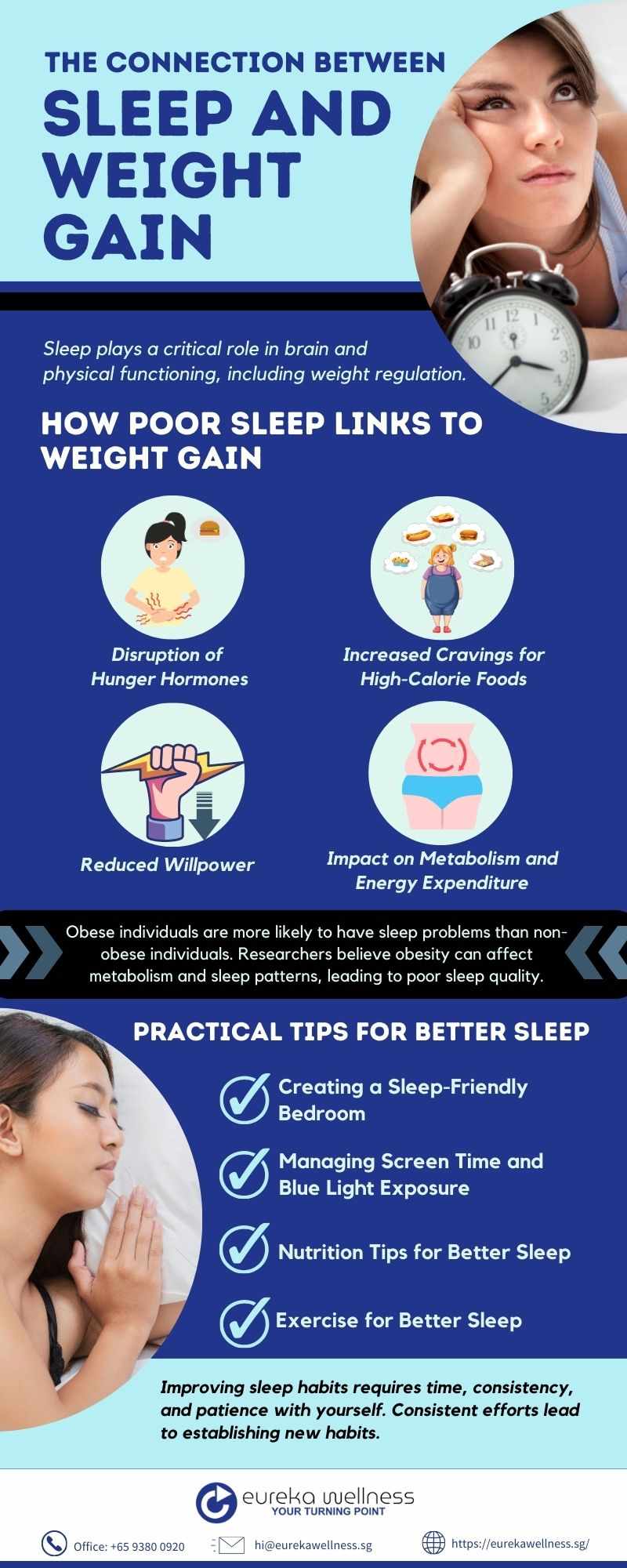 Learn about the connection between sleep and weight gain in this infographic. Delve into the effects of sleep duration and quality on metabolism, appetite regulation, and hormones that impact weight management. Discover helpful tips for improving sleep habits to promote a healthy weight for overall well-being. This gives insight into the vital relationship between quality sleep and weight control.